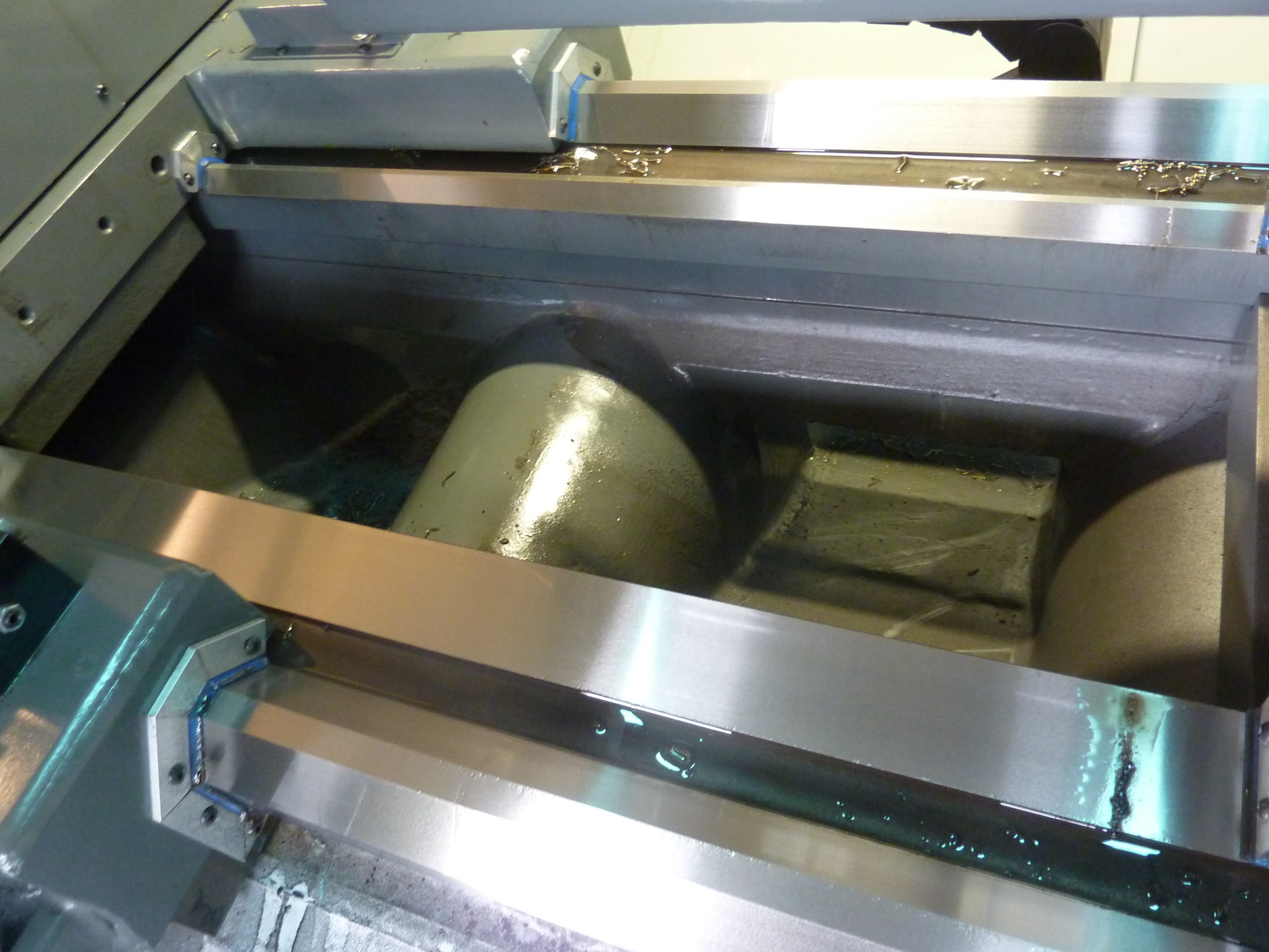 Станок оснащен тремя жесткими направляющими скольжения V-образного типа со степенью закалки 52-55HRC. Поверхность покрыта антифрикционным составом Turcite-B, что дает возможность работы практически без износа в режиме жидкостной смазки, а также почти полное поглощение колебаний.